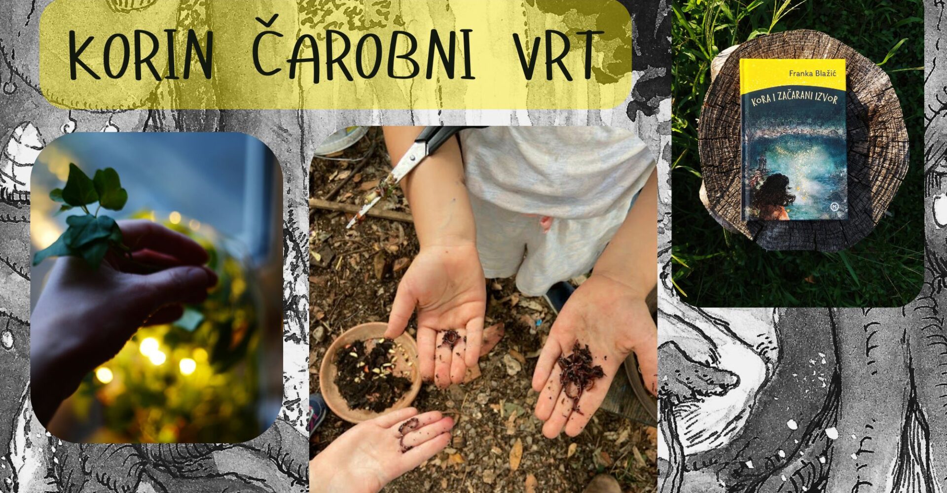 Kreativna i osjetilna radionica u kojoj sudionici, kroz interaktivno pripovijedanje i rad s prirodnim materijalima, stvaraju vlastiti mali šumski vrt inspiriran romanom “Kora i začarani izvor”