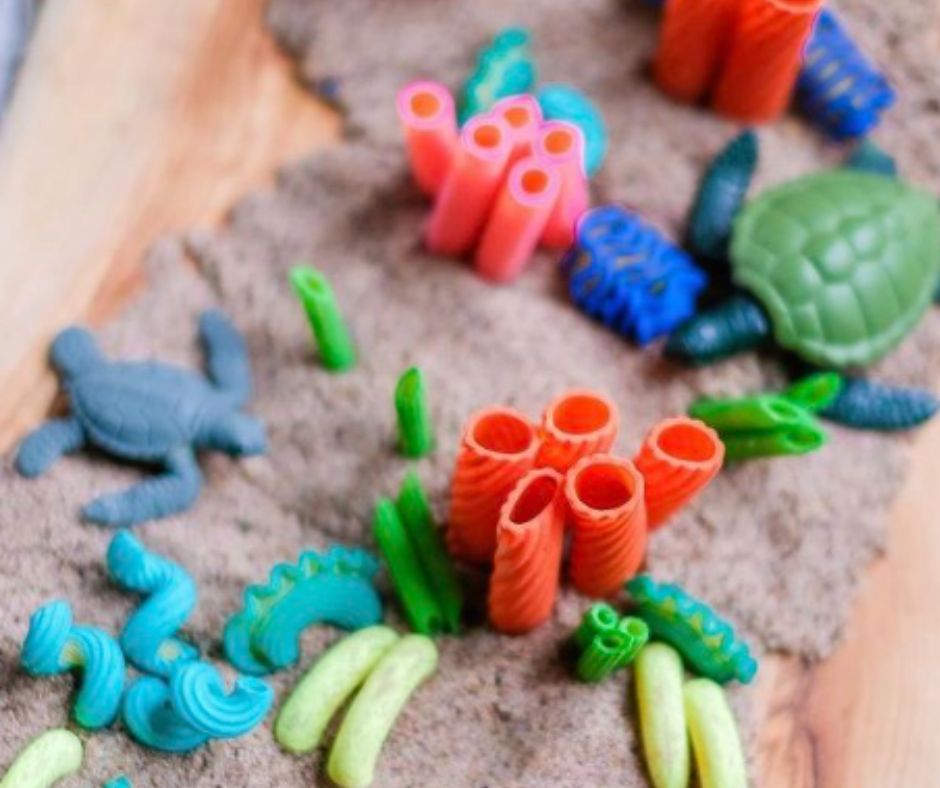 Naravno da ćemo se i igrati i stvarati ručicama – od domaćeg plastelina i obojane pašte izradit ćemo veseli, šareni koraljni greben uz kojeg ćemo vježbati pincetni hvat, finu motoriku i kreativnost.