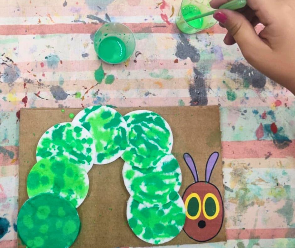 Nakon čitanja priče, uz asocijativne kartice nahraniti ćemo našu gusjenicu te kroz igru učiti brojeve, boje, vrste hrane te dane u tjednu. Očekuje nas i senzorička igra sa pipetama i bojama pomoću kojih će svatko obojati svoju gusjenicu koju nosite kući (pazite samo da vam ne uđe u frižider). Cilj radionice je razvijanje vještina slušanja i govora, obogaćivanje vokabulara i sudjelovanja u grupnim aktivnostima te senzoričko istraživanje.