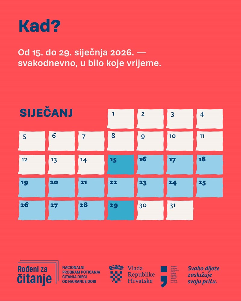 Vrijeme: ponedjeljak – petak od 15. do 29. siječnja 2026. u 18.00 sati