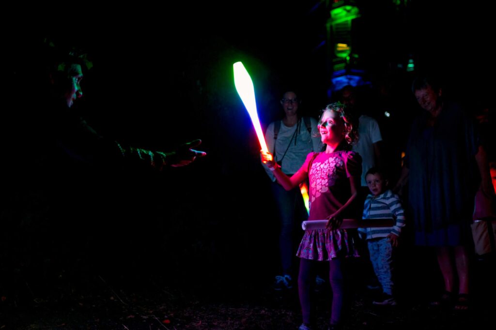 Kada se popnete na stolicu ili neki zidić, vidljiviji ste i istaknutiji od drugih i svi gledaju vas… Ali kad ste tako visoki i krećete se u prostoru, onda to postaje nešto više… Sada zamislite cirkuske artiste koji se u atraktivnim kostimima Balerine i Harlekina vješto gibaju dok su im glave negdje na tri metra? A onda još dodajte tome žonglirajuću vatru!